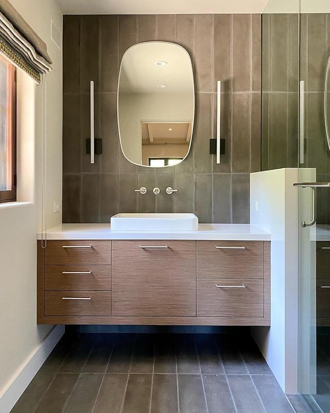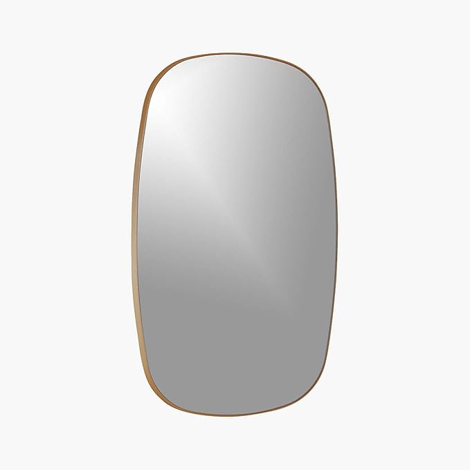 Elevate your space with the DHARA DECOR Modern Oval Wall Mirror, designed with smooth rounded corners and a sleek gold metal frame for a sophisticated, contemporary look. Its minimalist style effortlessly complements modern and transitional interiors.